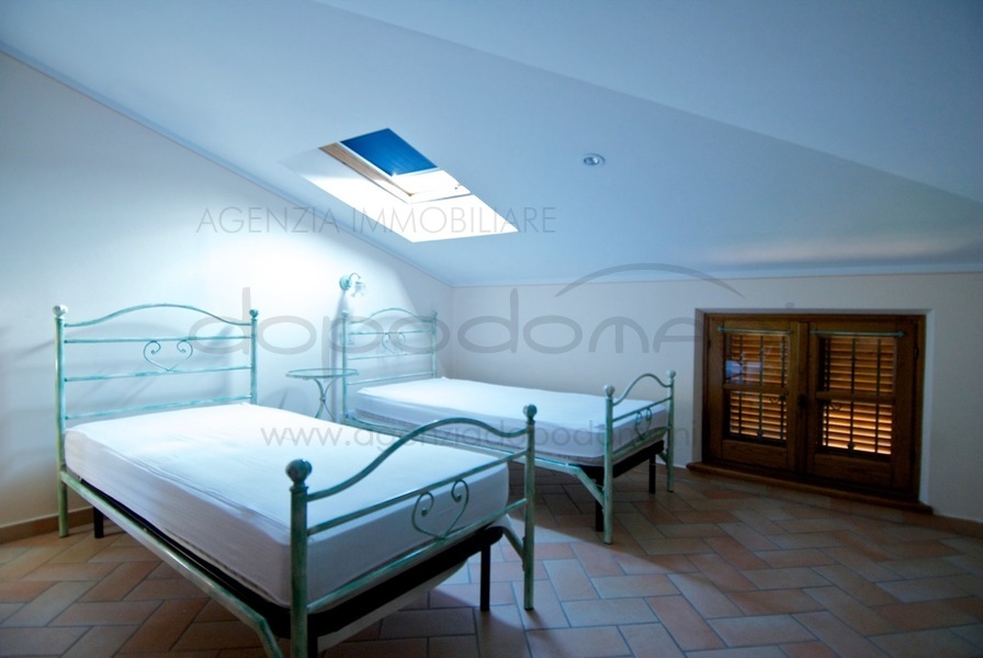 Villa singola , centralissima , composta da : piano terra, soggiorno/pranzo, cucina, 1 camera matrimoniale 1 camera singola 1 bagno , ripostiglio ; piano primo mansardato con aria condizionata , 2 camere 1 cameretta 1 bagno ;