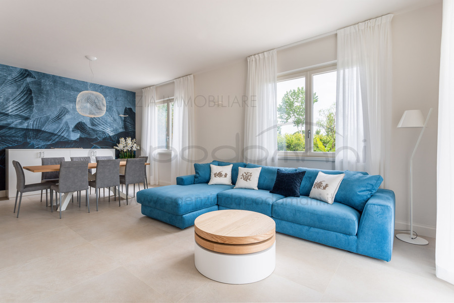 Cosi? come l'esterno, la Villa internamente e? dotata di un arredo completamente su misura e di design che utilizza elementi e superfici molto ricercate e di pregio; si sviluppa su due livelli cosi? composti: