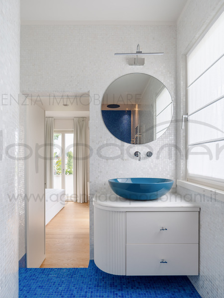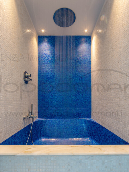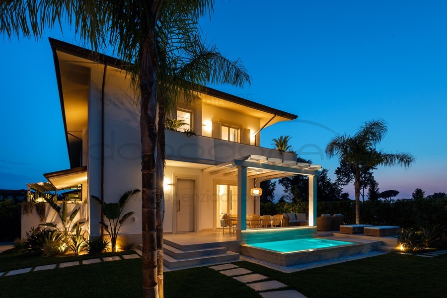 La proprieta? e? circondata da un rigoglioso giardino che richiama un'atmosfera tropicale in cui troviamo una suggestiva piscina a sfioro riscaldata, rivestita in mosaico Bisazza e marmo Travertino, completa di doppia seduta idromassaggio, nuoto controcorrente, cascata, spiaggetta e cromoterapia.